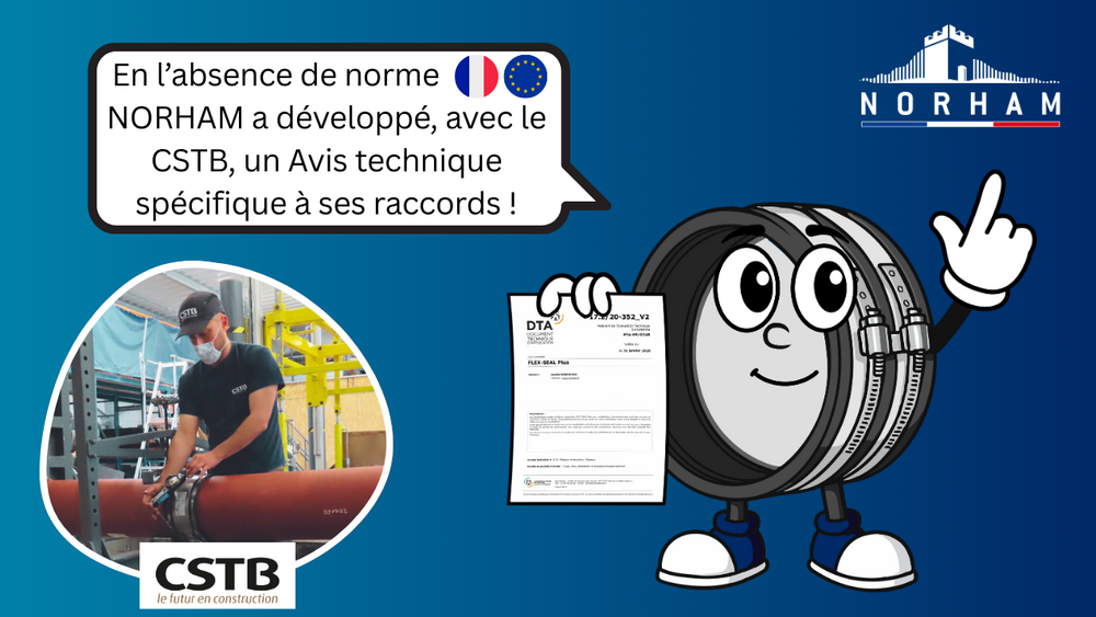 En l’absence de norme française ou européènne pour valider les performances des « raccords flexibles en élastomère », NORHAM a travaillé avec le CSTB pour développer un Avis Technique spécifique à ses raccords.